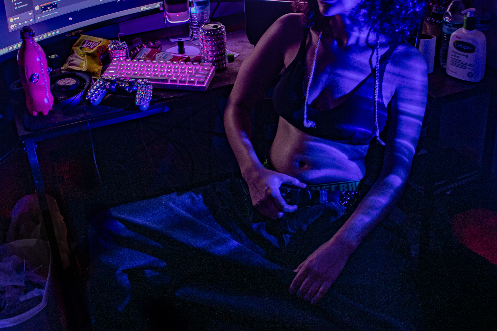 This photo series shows a conceptualized version of me accepting these parts of myself. A blend of masculinity and femininity. An ironic poke at what even makes us as a society determine what falls under what category.